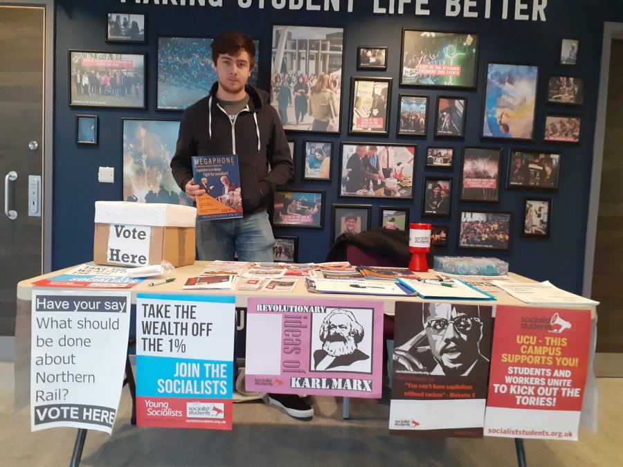 University of Huddersfield’s political societies have been long inactive for a few years. But since September, Socialist Students has been doing fortnightly stalls at Huddersfield University and also in the town centre. Before Christmas, we were out campaigning on campus for a Corbyn government with socialist policies, and although not every person we met committed to joining Socialist Students on the spot, many were interested in coming to our meetings to discuss socialist ideas with us.