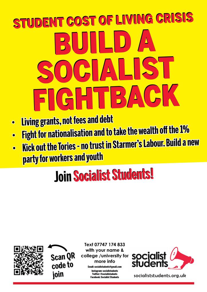 Socialist Students campaigns for students to get organised in a movement of our own – for the scrapping of tuition fees, the writing-off of student debt, the introduction of living maintenance grants, and for universities to be 100% publicly funded by taking the wealth off the super-rich.