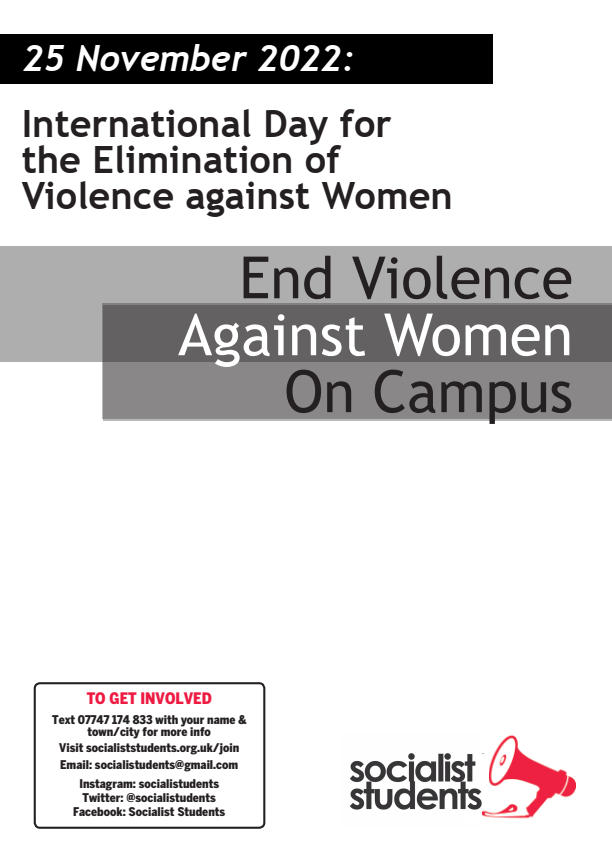 Text from a leaflet produced by Socialist Students for International Day for the Elimination of Violence against Women on 25 November.