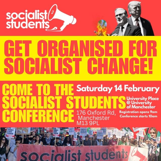 On 17 January, we are joining a march through Preston against the Reform council’s planned closure of several nurseries and care homes across Lancashire, organised by local authority trade union Unison. There we will be making a call for a workers’ budget conference in the city, to draw up a council budget that would meet the needs of our communities. We are also planning meetings to discuss the draft constitution documents for Socialist Students, to be voted on at the conference, including to discuss any comments or amendments that we wish to make.