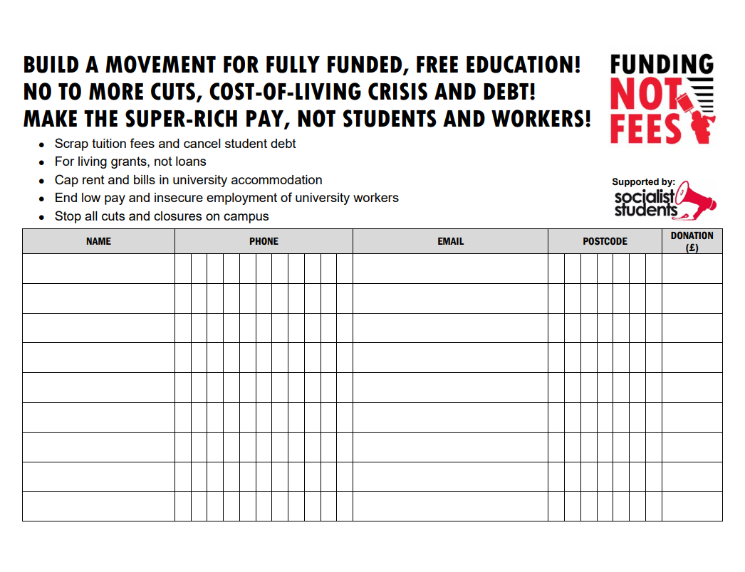 Socialist Students has launched a national campaign, Funding Not Fees, with the support of other campus organisations, to bring together students and workers in a movement for fully funded, free education – not more fees and cuts.