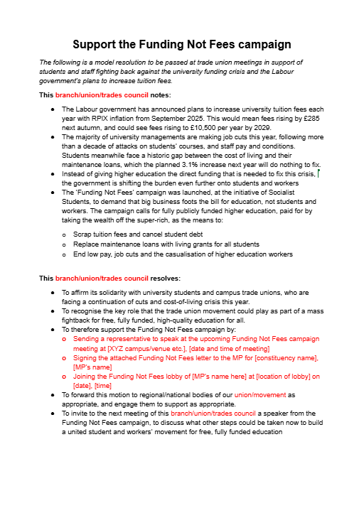 The Funding Not Fees campaign demands that big business foots the bill for education, not students and workers. It calls for fully publicly funded higher education, paid for by taking the wealth off the super-rich.