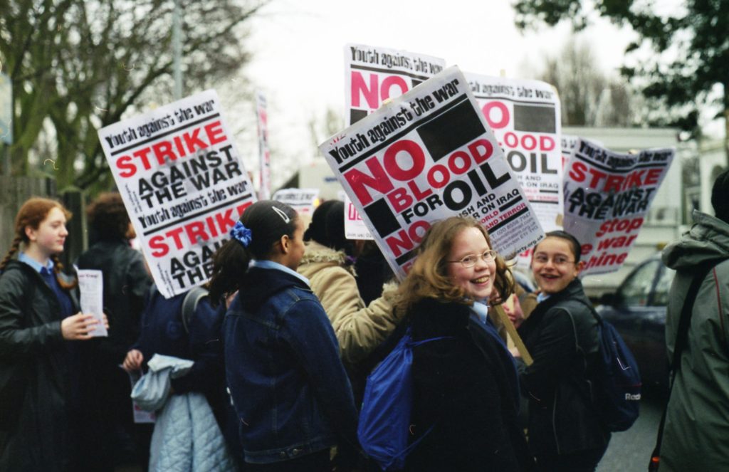 In the run-up to the invasion of Iraq in March 2003, school students in Britain walked out of classes and protests multiple times against the war.